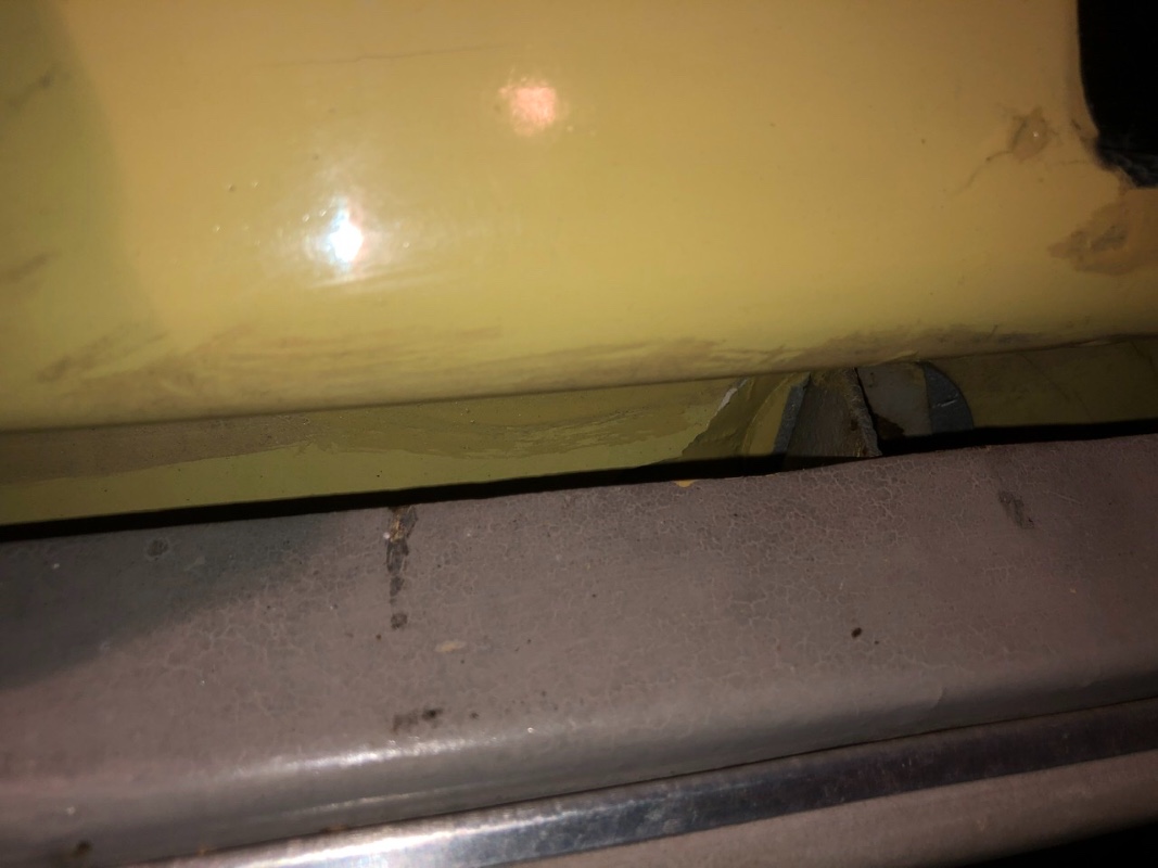 Ici, il y a un écart entre le renfort et le bas de la jupe, ce qui fait qu'au moindre choc, la jupe plie. Elle a été d'ailleurs bidouillée au mastic...