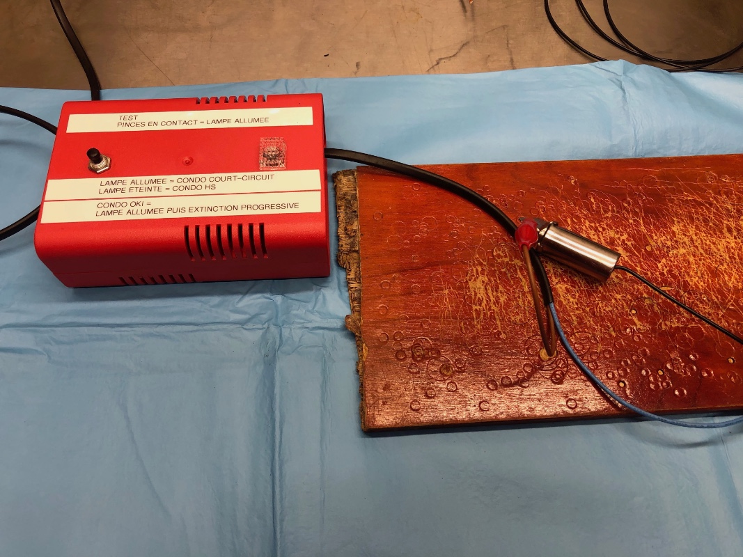 A partir d'une carcasse que l'on vide, j'y remets un condensateur industriel, quelques soudures, un peu de peinture et de silicone, une cosse et zou au test ! Prix de vente ?