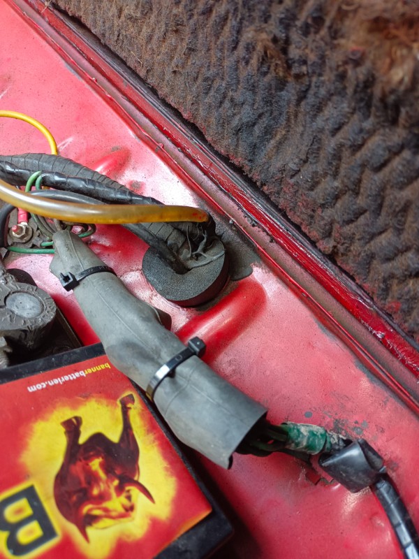 Passage de fils du moteur vers l'intérieur de ma 2cv pour installer un boitier à fusibles