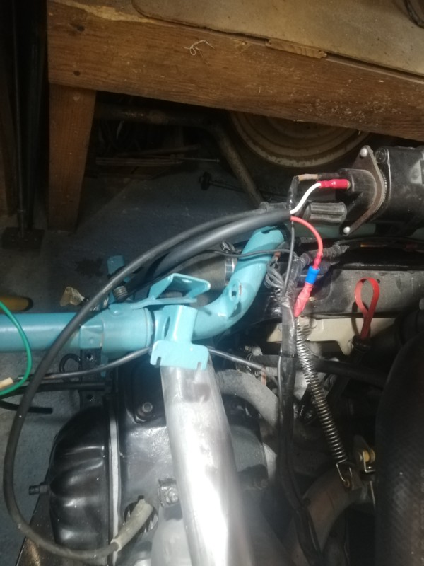 J'ai reconnecté la pompe manuelle des essuie-glaces, le câble du compteur de vitesse, non sans avoir bataillé pour trouver quel chemin il devait prendre ...puis j'ai fini par brancher l'allumeur électronique, épissure pour le moins bobine, branchement du fil blanc sur le + bobine et rajout d'un fil + après contact depuis le neiman jusqu'au + de l'allumeur car ce fil est absent dans mon faisceau ?...ou il est bien caché à l'intérieur du faisceau ? bizarre bizarre ...