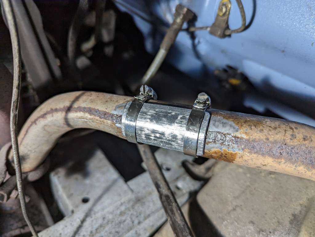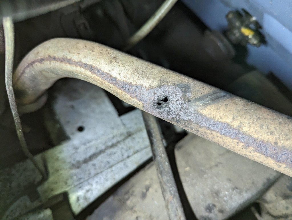 Voici la réparation du tuyau d'échappement percé.