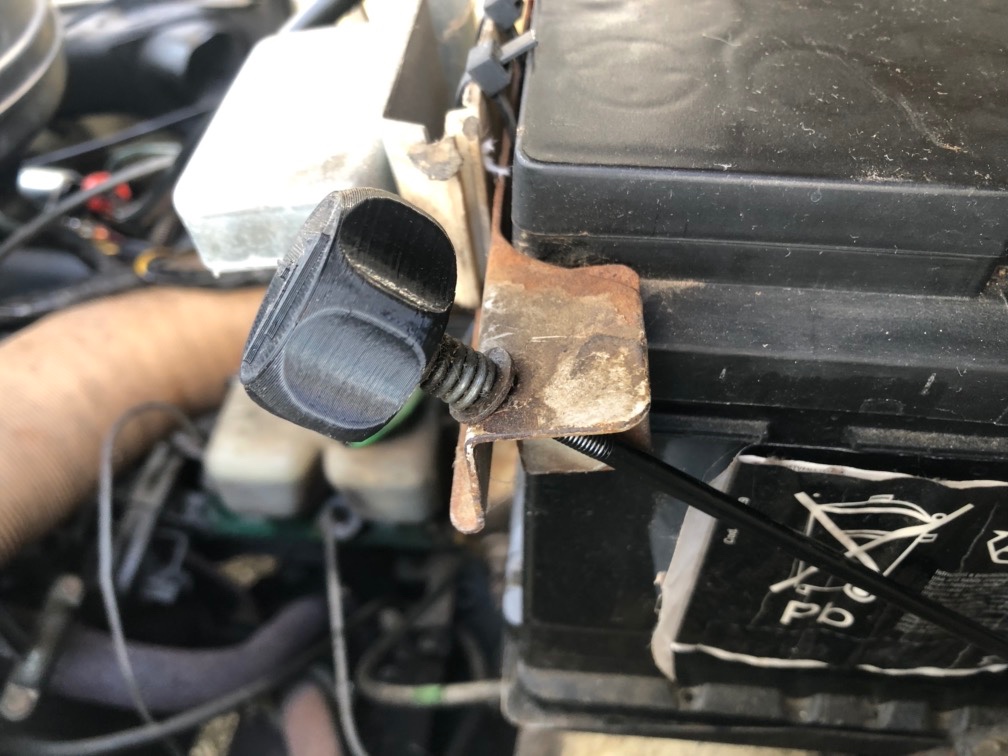 Molette pour le serrage de la barre de maintien de la batterie (plutôt que d'avoir des tiges filetées qui dépassent ...)(et plus besoin de clé de 8 ...)
