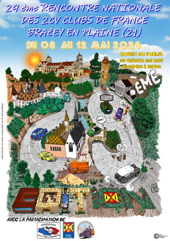 La Nationale 2023 n'est pas terminée, mais je peux néanmoins vous dévoiler en avant première l'affiche officielle de la nationale 2024 qui se déroulera dans ma région la Bourgogne-Franche-Comté, à Brazey en Plaine, département de la Cote d'or ( 21 ) du 08 au 12 mai 2024 :