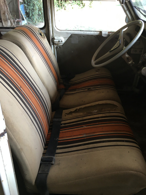 Il y a TOUT à revoir : planchers rivetés sur deux épaisseurs (!), bas de caisse percés, intérieur (plus récent) déchiré.