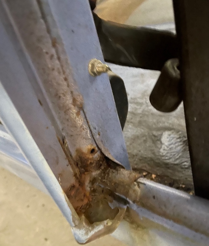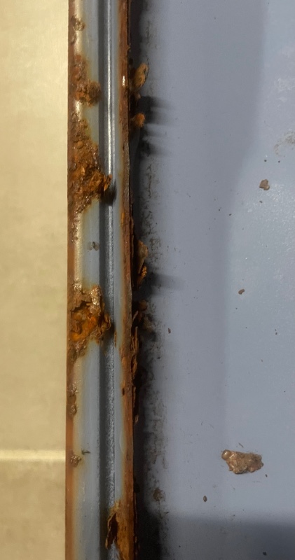 Le montant n as pas l air trop attaqué mais il faut maintenant bien gratter la rouille a la brosse métallique montée sur une visseuse et aspirer les miettes pour y voir plus clair...
