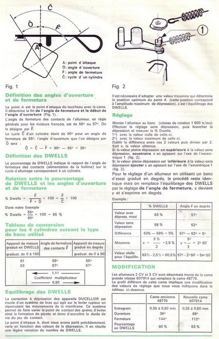 Le contrôle de l'angle de came (écartement des grains de contact du rupteur)