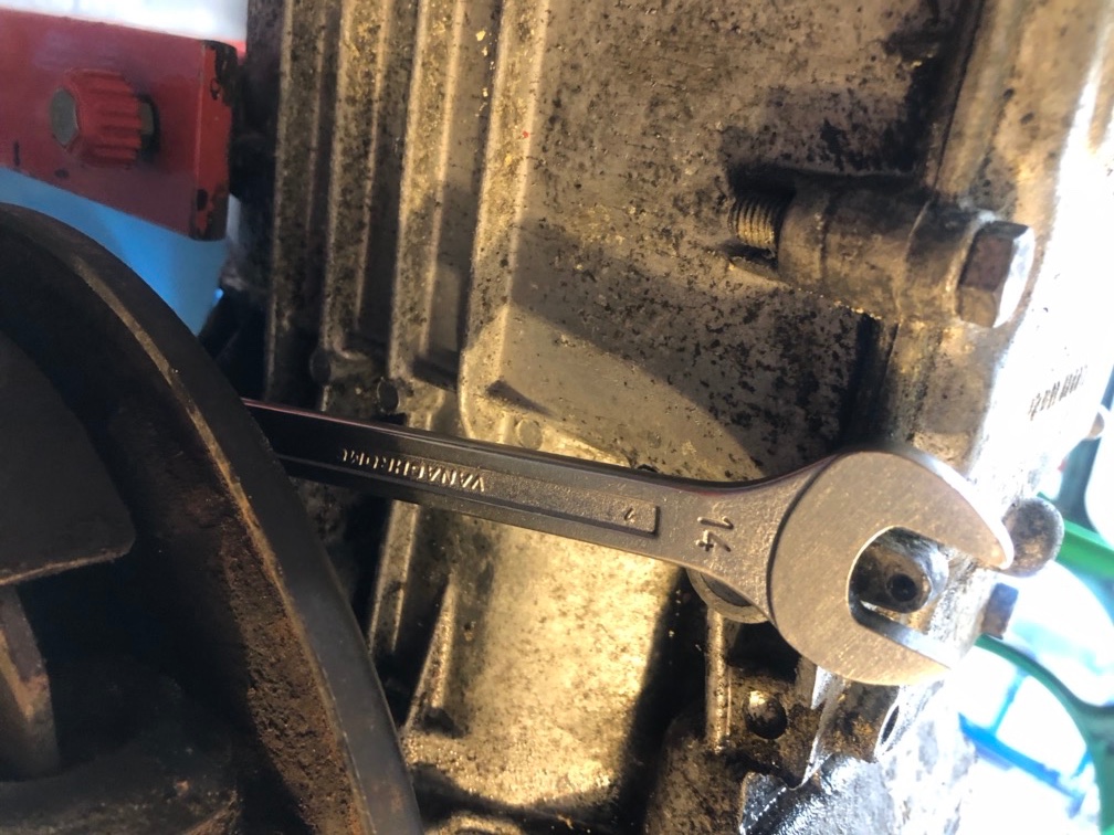 Maintenant, vous retirez toujours avec les douilles amincies, les 4 écrous de 17 (ils sont bien serrés) et les 4 vis de 11.
