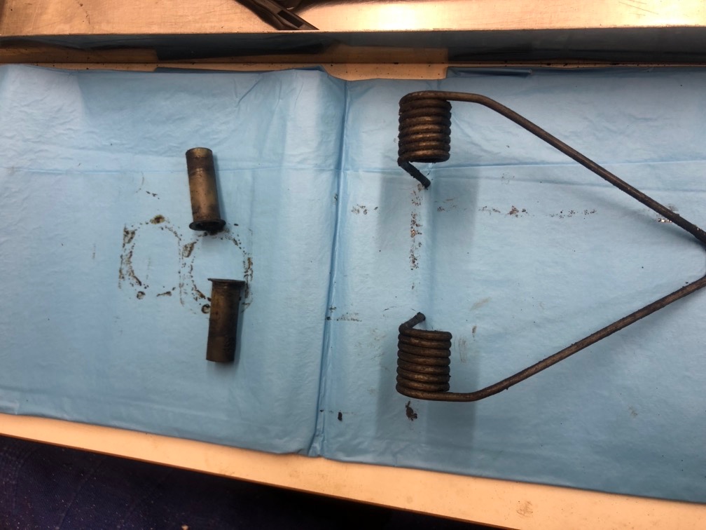 Vous récupérez l'axe, la fourchette, le ressort et deux protections plastiques (avec un sens de pose) :
