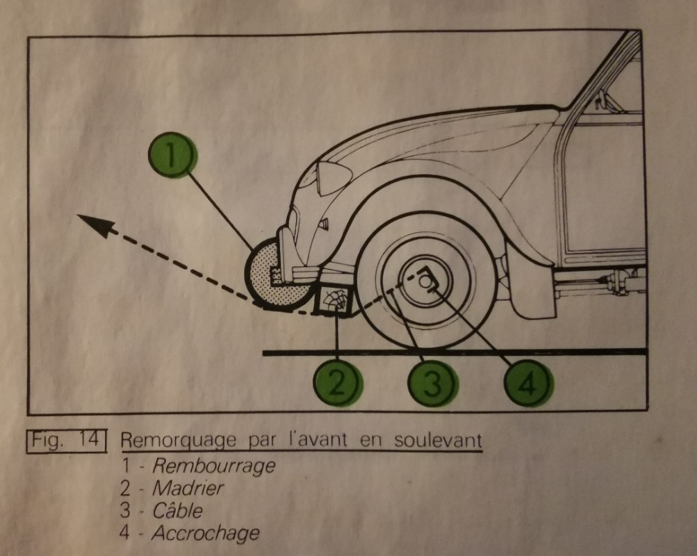 Tu fais bien de poser la question car lever / tracter une 2CV (qui plus est par l'avant) n'est pas une opération à prendre à la légère sous peine de dégâts sur la voiture.