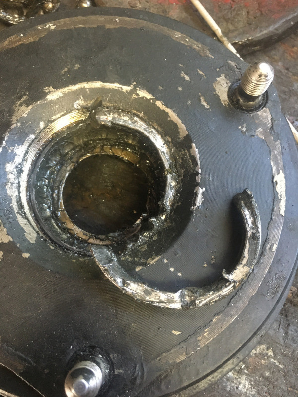 Il me faudra casser l'écrou à créneaux avec un burin, puis terminer la cassure à la meuleuse pour arriver à briser l'écrou en deux morceaux :