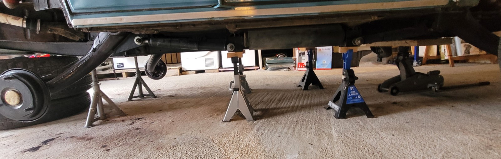 2cv sur cale pour peinture jante - ok sur 2 chandelles et 2 crics ?
