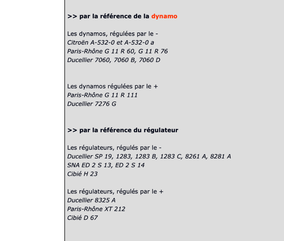 3 - paragraphe 12 la référence de la dynamo et du régulateur : idem si bidouille, mourru