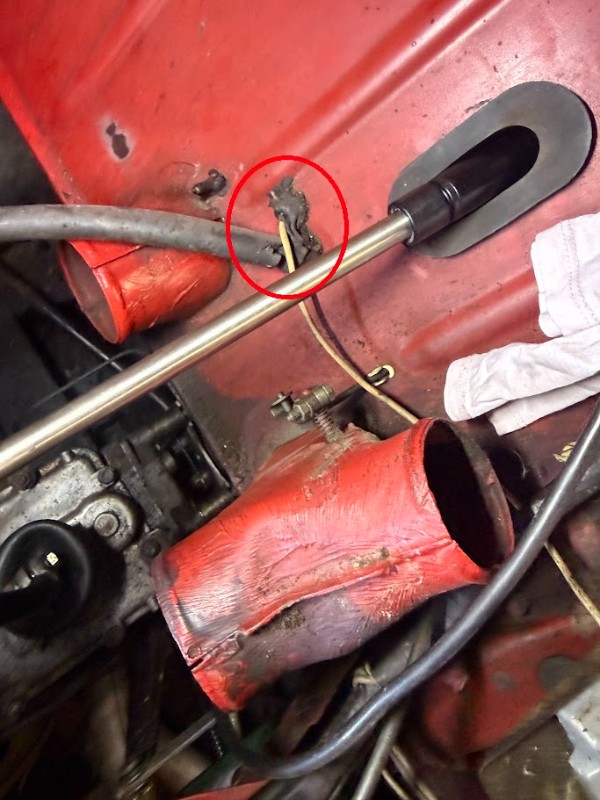 Je remarque alors, dans l’habitacle côté passager, la cosse d’un fil déconnecté. J’essaie de la rebrancher : énorme étincelle (contact coupé, bien évidemment). Je retente, et là le fil brûle carrément. Bon, plus de peur que de mal… Je me dis que je ne vais pas pouvoir repartir, et au final ça n’a eu aucune incidence : j’ai réussi à ramener la voiture chez moi.