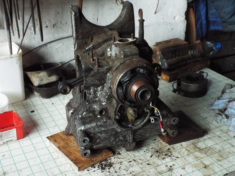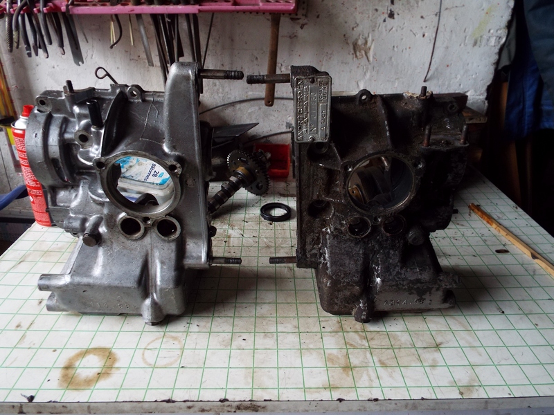 Le démontage du moteur continue. Pas de jeu à l'embiellage, pistons chemises en bon état. Beaucoup de calamine et impossible de dévisser les bougies, pour le moment.