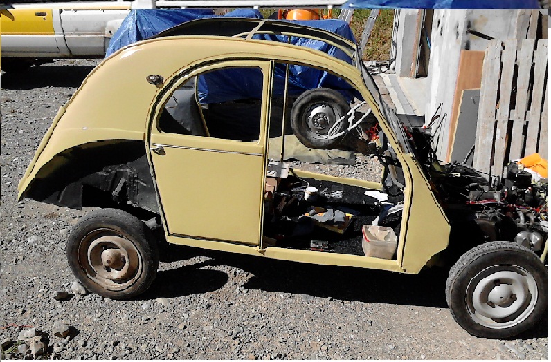 voilà les photos de la 2cv en pièces jointes: à l'achat en novembre (AVANT), et il y a quelques jours (APRES) après la peinture (je suis assez fier de l'avoir faite moi même :) )