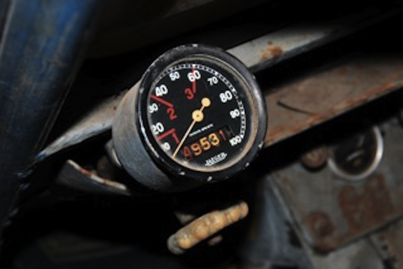 le compteur de vitesse semble du bon modèle : comment est-il fixé au carter d'essuie glace, par deux vis ou par une prise centrale filetée ? La molette est curieuse, elle parait être à 10 tétons mais blanche. En 1952 on a normalement la molette noire à cinq tétons.