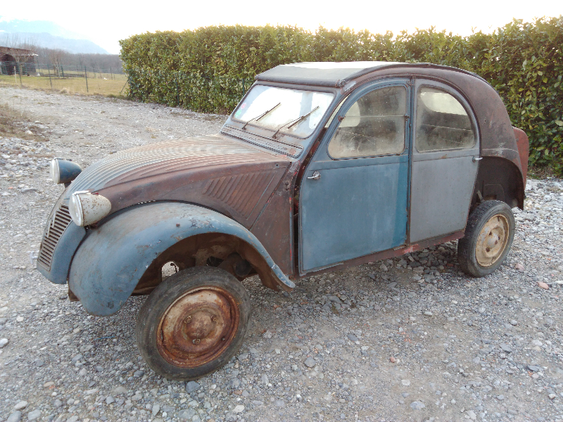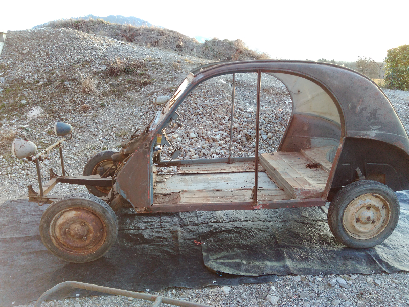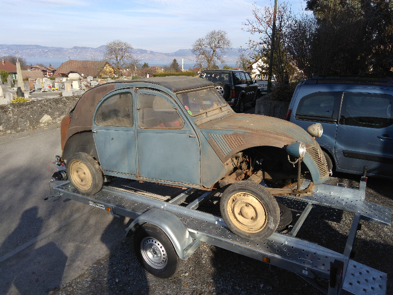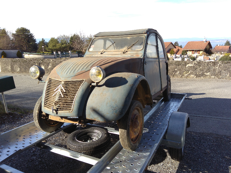 Comme promis voici les photos de l'arrivée de la 2cv A à la maison pour entrer en restauration. Place aux photos