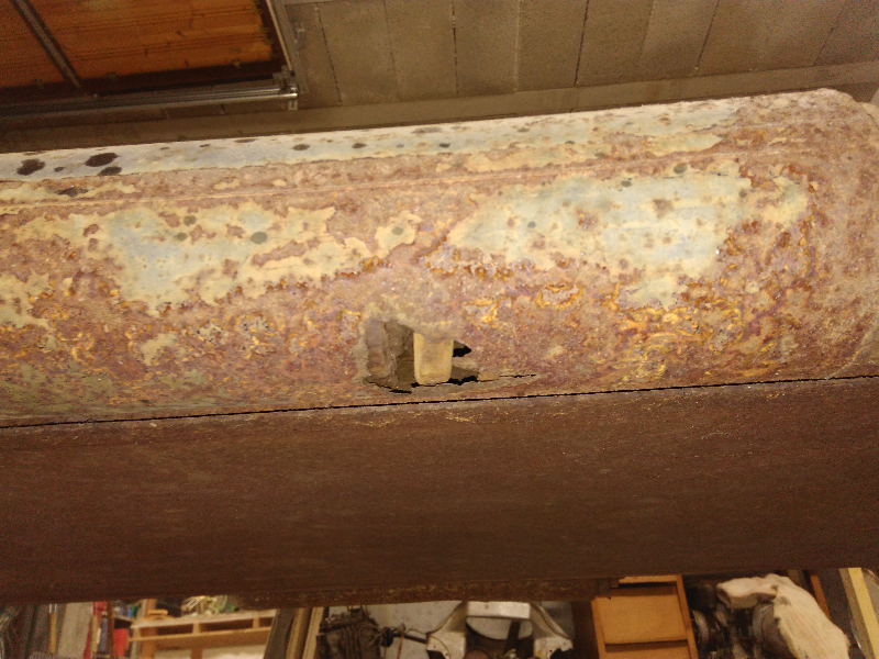 Malheureusement Zamzam la tête avait pétée en entrainant la moitié du boulon avec elle. Et pas moyen de retirer l'essieu puisque -je ne sais pas si c'est pareil pour toutes les 2cv- mais j'ai un filetage sur la traverse (normal) et aussi dans le châssis en lui même, c'est donc pour ça que c'était impossible de retirer la traverse. Mais nous avons réussi à nous en sortir. Finalement le boulon a cédé à force de bouger la traverse dans tous les sens. Il ne reste plus qu'à trouver un moyen pour l'enlever du châssis et l'autre partie de l'enlever du filetage de la traverse. En attendant j'ai pu décaper à nu le châssis (quasiment terminé).zamzam a écrit :Pour ta vis de train récalcitrante une solution serait de disquer la tête 6 pans sous le châssis et ainsi tu pourra ôter le train ensuite il sera plus facile de l’attraper par exemple à l’étau pour la dévisser.