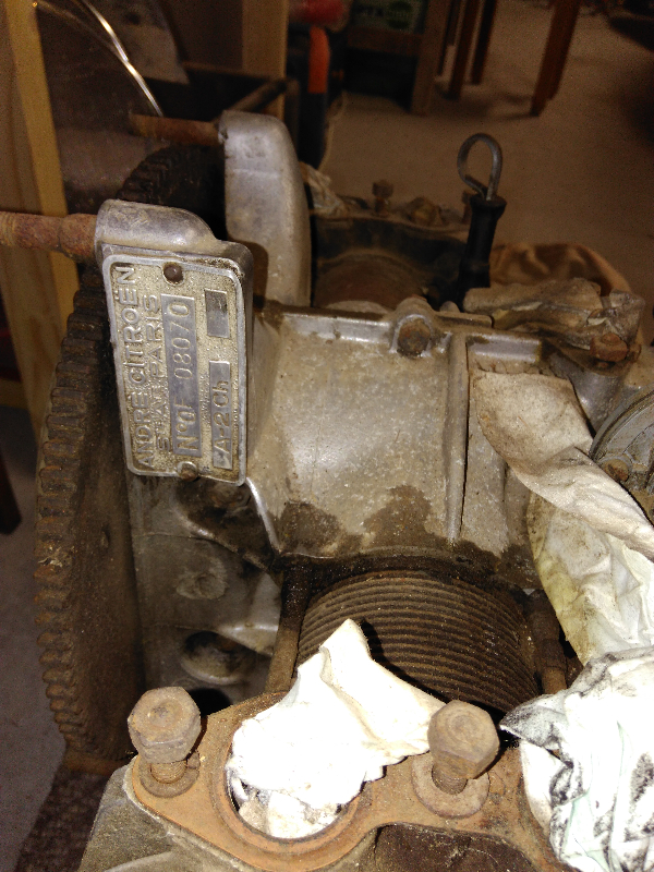 La boite de vitesse, il va falloir chercher :shock: Extérieurement pour une 2 CV de 1952 tu reconnais la boite notamment à la fourchette d'embrayage en acier moulé et pas en tôle, aux plateaux de freins en aluminium, aux tambours avec 6 orifices bouchés par des pastilles.