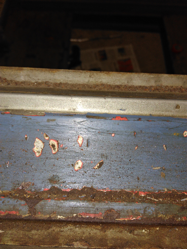 .Sinon cette semaine quand j'ai eu un moment, brossage total du châssis et décapage chalumeau, brosseuse et sableuse, puis passage à l'acide phosphorique :