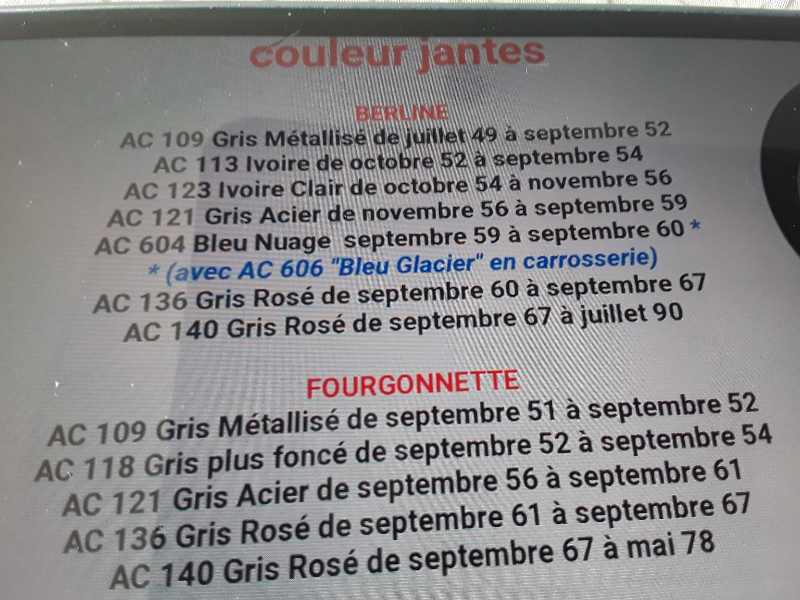 Dans ce cas les roues sont peintes en gris rosé, comme a dit Math 2 CV, mais il y a eu plusieurs gris rosés : un AC 136 et trois AC 140 :shock: :shock: