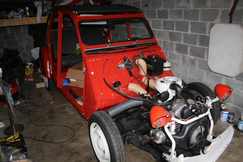 Ma 2cv de 1971 avec batteurs à l'avant plonge en avant et le pot est très proche du sol. De plus elle penche du coté conducteur.