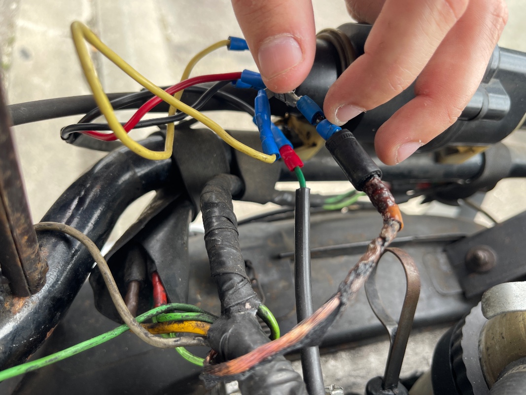 Pour ce qui est du problème électrique en démontant j’ai remarqué que la cosse du fil bleu qui va au démarreur était cassée, le contact se faisais aléatoirement je pense. Peut être la source du problème donc