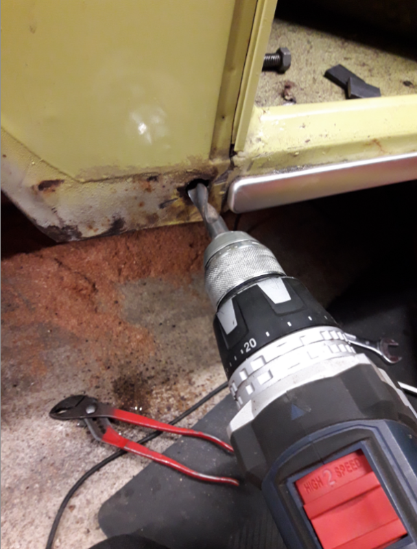 Un fois l'écrou coupé pousser la vis , elle sera récupérée par l'intérieur par le trou de 18 m/m ,