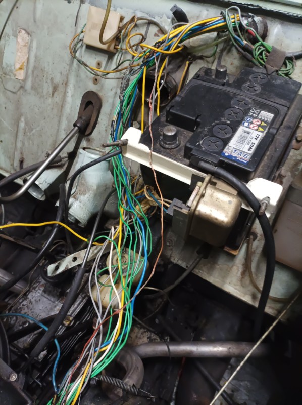 Les fusibles et la Bobine sont neufs. L'allumage électronique étant endommagé j'ai remis le boîtier avec vis platinées mais sans contact je n'ai pas pu finaliser l'installation de l'allumage.