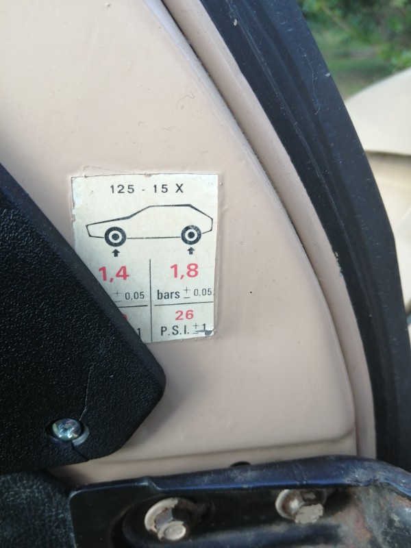 Sur ma Special 1987 avec Michelin 125/15 1,8 avant - 1,8 arrière - 2,0 roue de secours. Consommation optimale. :)