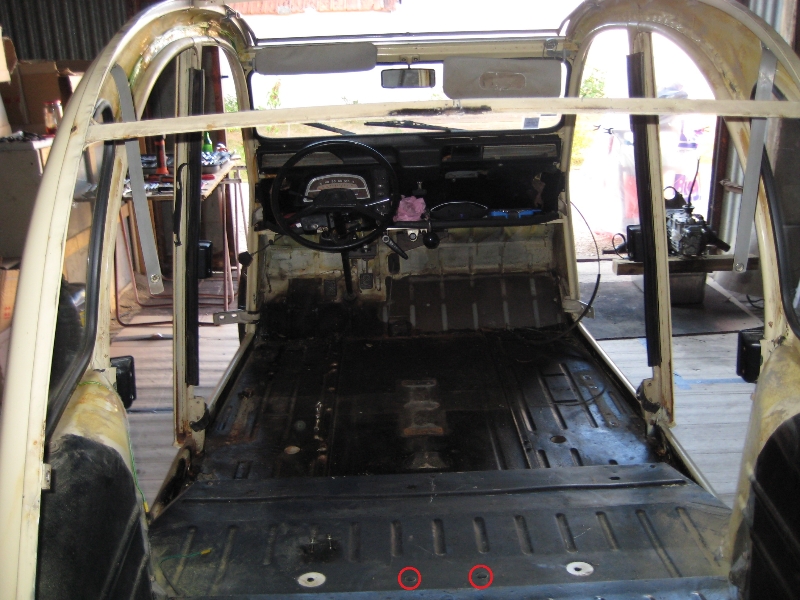 pardon, je n'avais pas répondre à ces derniers messages... mais je dois dire que je n'ai toujours pas trouvé ces fameux "trous" d'ancrages à l’arrière! ma deuche doit être une exception...
