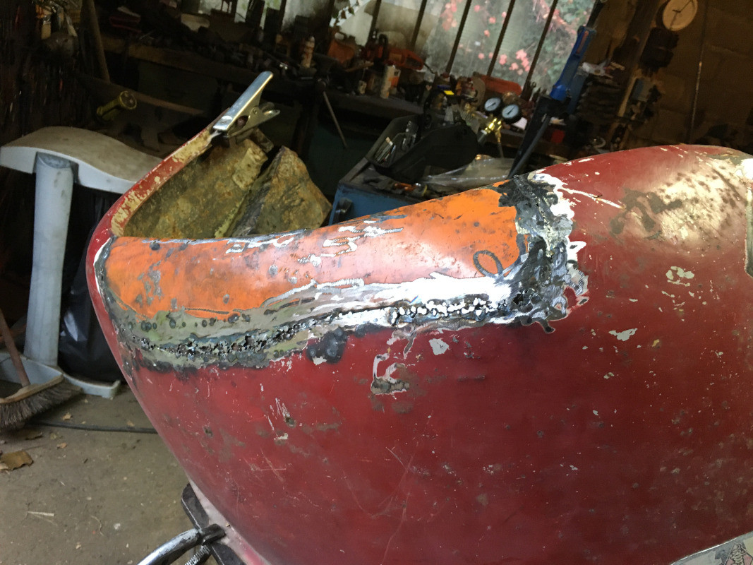 Après avoir dépensé du temps et de l'argent en matériel de soudure, étain, décapant... j'ai été contraint d'acheter un réservoir d'occasion...