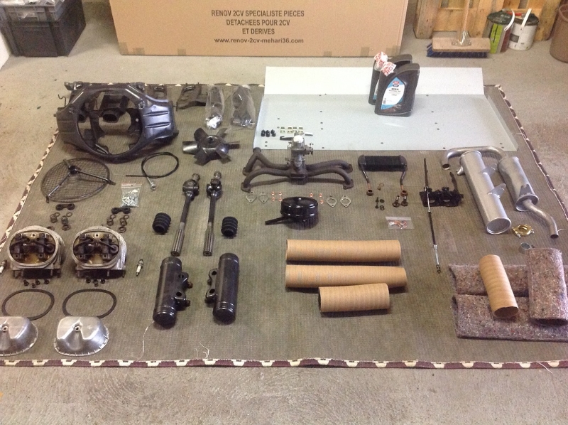 La restauration prendra 2 ans pendant les périodes d'hiver. Elle a passé son contrôle technique avec succès, nombreuses ballades cet été, jusqu'à la panne en pleine campagne, pour un croissillon de cardan cassé :pleurs: Après cet évènement et remplacement des deux croissillons sortie de boite par le garagiste, pour éviter que cela se reproduise, grande révision ! Décrassage du moteur, nettoyage du carbu, remplacement des autres croissillons, supports moteurs, joints, traitement anti-corrosion du châssis sous moteur.