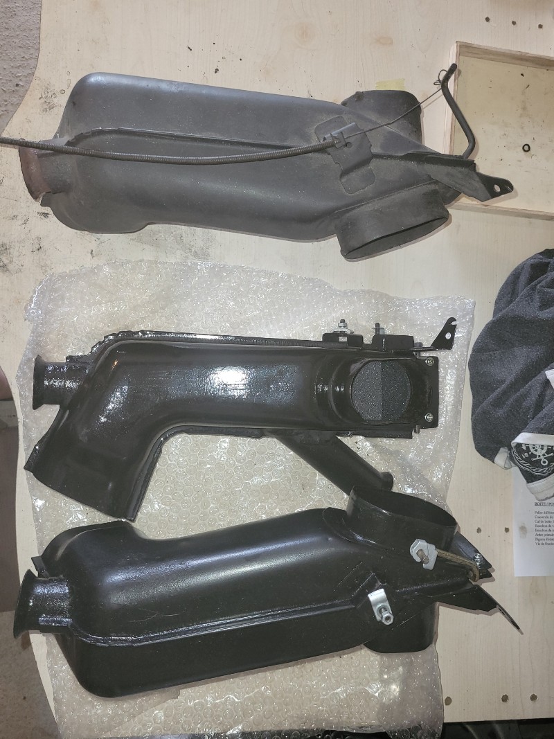Pose de la boîte à air rénovée Pose de la nouvelle barre de phare, sans phares car il faut que je face une reprise de peintures.