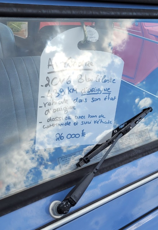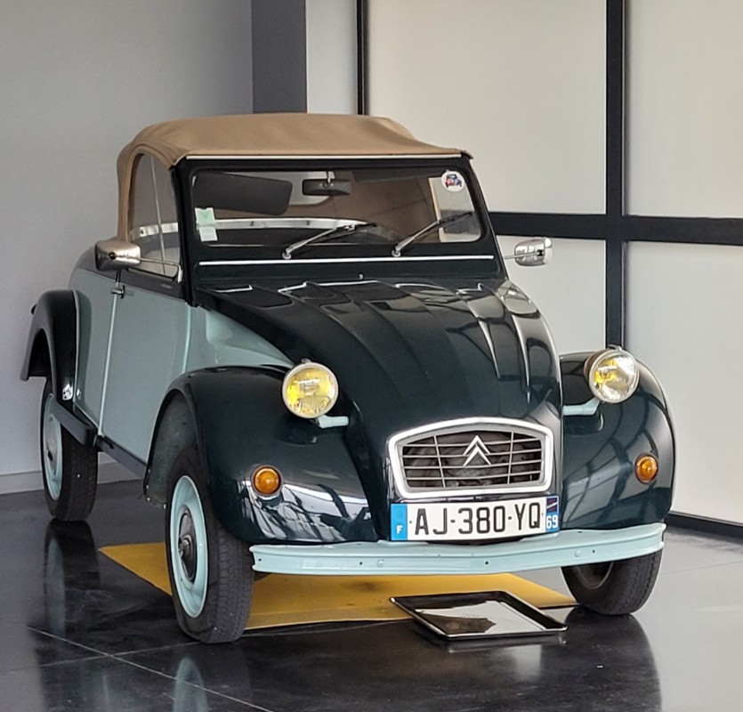 Petite balade avec ma titine Sur le parking, il y a pas mal de nos copines et dérivées. Il y a aussi des voitures en dépot-vente dont une avec 439 km d'origine, dans son jus à .... 26 000€. Dans le show-room, je tombe nez à nez avec la fameuse 2cv Sahara de l'émission de télévision "vintage mécanique", elle est flambante?