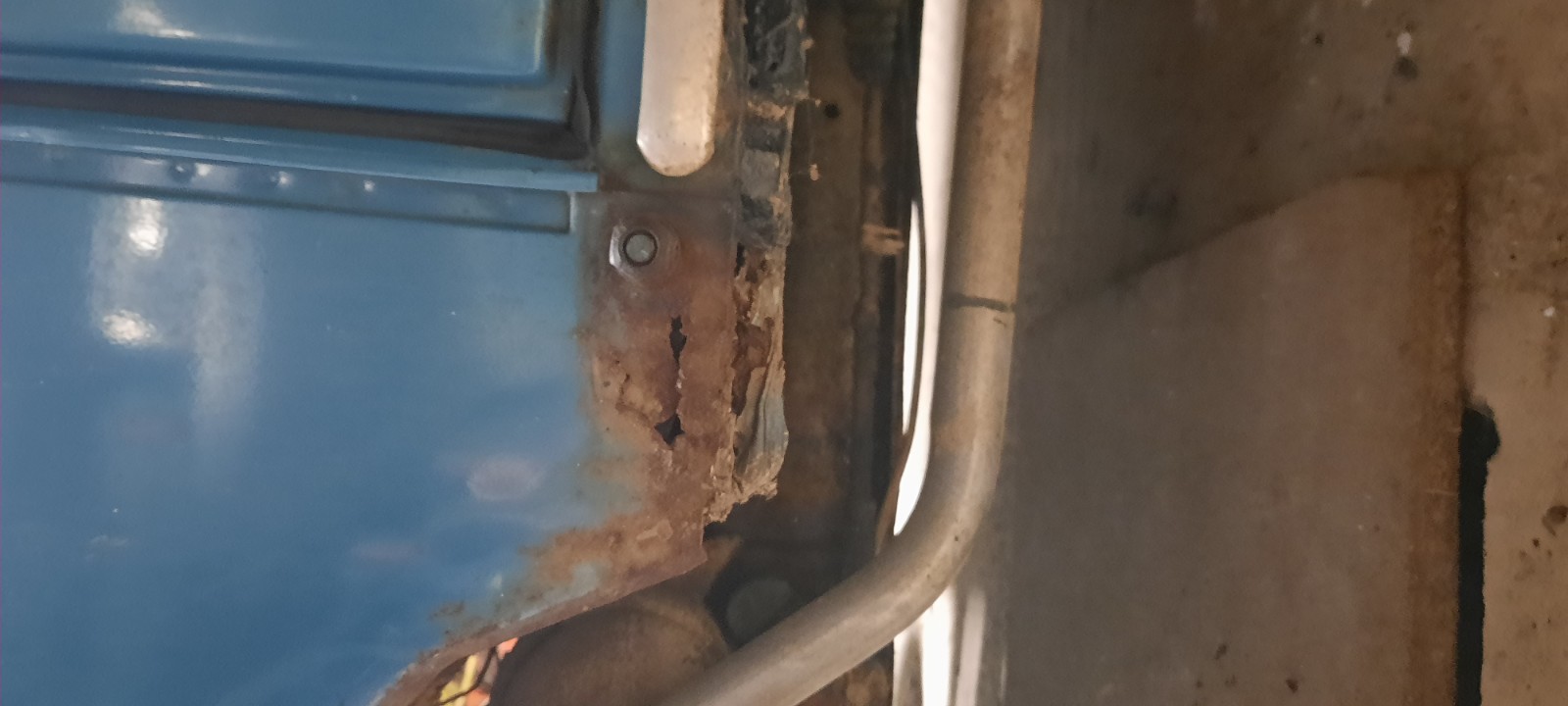 On changera probablement les deux planchers et le fond de pédalier ainsi qu'une demi-baie de pare-brise car c'est vraiment attaqué à ce niveau-là.