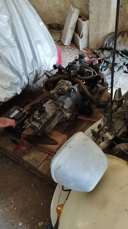 J'ai retapé un 2ème moteur. Il est sur mon établi (en fait c'est mon ancien châssis que j'ai mis sur des tréteaux :) )