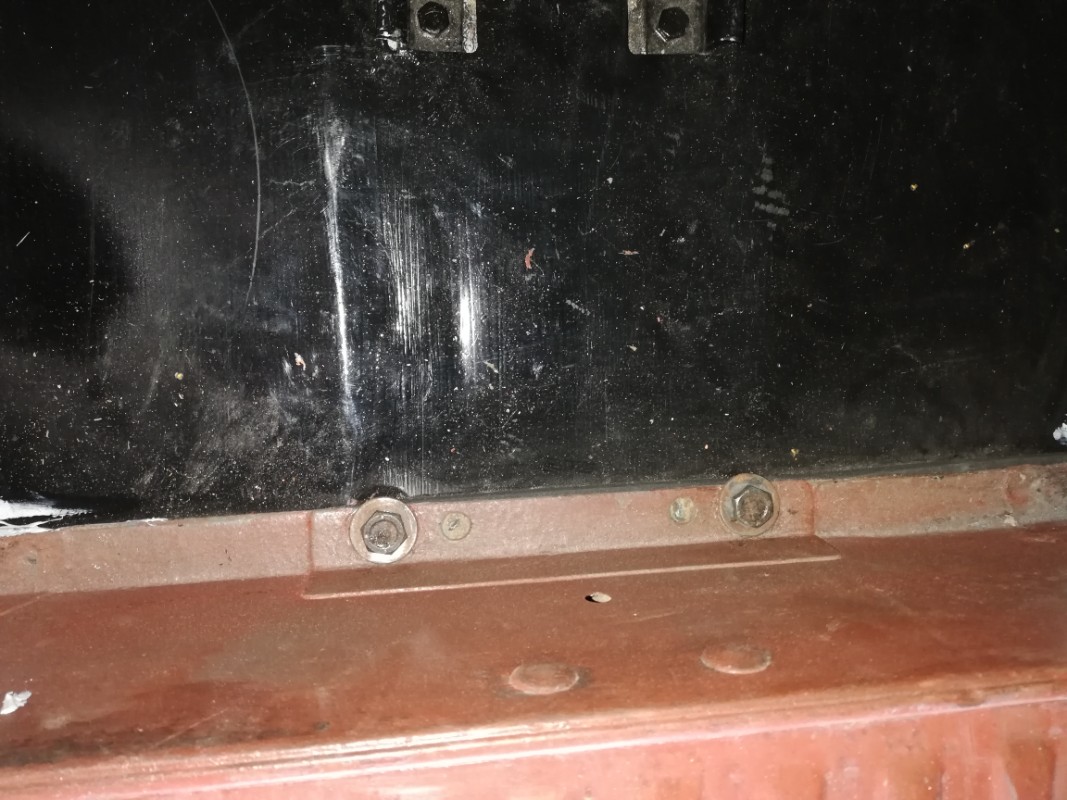Pour ce qui concerne l'écart sous la traverse dont on a parlé, après vissage des deux boulons latéraux elle n'est plus qu'à 2/3 mm du châssis, et c'est normal puisque ce sont les deux écrous cages qui l'empêchent de reposer entièrement sur le châssis, je vais mettre du mastic carrosserie entre les deux.