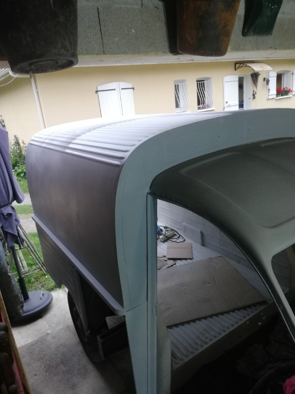 Et moi donc ! la caisse est prête extérieurement pour la peinture Bleu Pétrel , l'intérieur est traité au férose sur tout les points de rouille et poncé puis nettoyé au dégraissant lent UPOL. Il ne me reste plus qu'à peindre au pinceau l'intérieur avec un bleu clair qui s'apparente au bleu pétrel à s'y méprendre (RAL 5012)...et même si j'ai une petite différence de teinte, ce n'est pas grave, ce n'est que l'intérieur, intérieur que je vais habiller en contreplaqué de 10 mm en recouvrant le sol, les côtés et le dessus des passages de roue...Une fois fait l'intérieur le peintre viendra chercher Bleuette et le capot que je vais lui laisser le soin de peindre ( pièce trop importante pour moi ). Tout le reste, ouvrants et ailes + panneaux latéraux, je vais me le faire cet été...tranquillement , je n'ai pas besoin de beaucoup de place et si je foire une peinture, c'est plus simple à reprendre...Bon faut pas la foirer trop de fois non plus...sinon c'est envoi au carrossier-peintre...