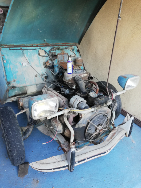 J'ai enlevé les sièges et les mis dans la remorque , destination la déchetterie : je ne sais pas de quelle auto ils viennent : peut être que quelqu'un saura ? Voilà deux photos des planchers à remplacer. La mauvaise surprise , c'est que le plateau du châssis est aussi attaqué, je vais devoir l'ôter et le remplacer par une tôle neuve. Bon ça va me permettre d'aller contrôler l'intérieur du châssis... Ensuite, rien de particulier, j'ai ôté les joues d'aile, les ailes , les portières : bilan, l'aile AVG est morte, trop abîmée, la portière AVD est percée comme il se doit au deux coins du bas...ça je pense pouvoir le rattraper...les cuvelages des phares sont piqués, surtout le droit... Je commence à prendre un maximum de photos du moteur, de l'intérieur, des fils et connections ...