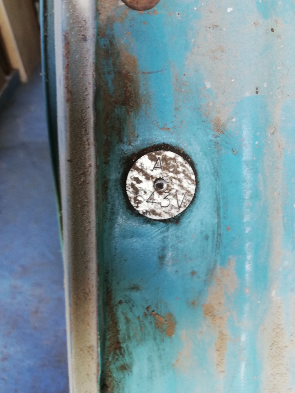 La plaque carbu m'indique un carbu 26/35 CSIC CIT 125 ( il va falloir que j'en apprenne plus sur ce type de carbu), la plaque peinture AC 643 elle était bien cachée collée contre la joue d'aile...elle confirme ce que je pensais sur la teinte d'origine "bleu pétrel"... Voilà, j'ai ôté la galerie qui elle aussi est assez abîmée par la rouille : je ne la remettrai pas car elle était carrément boulonnée sur la caisse à l'avant