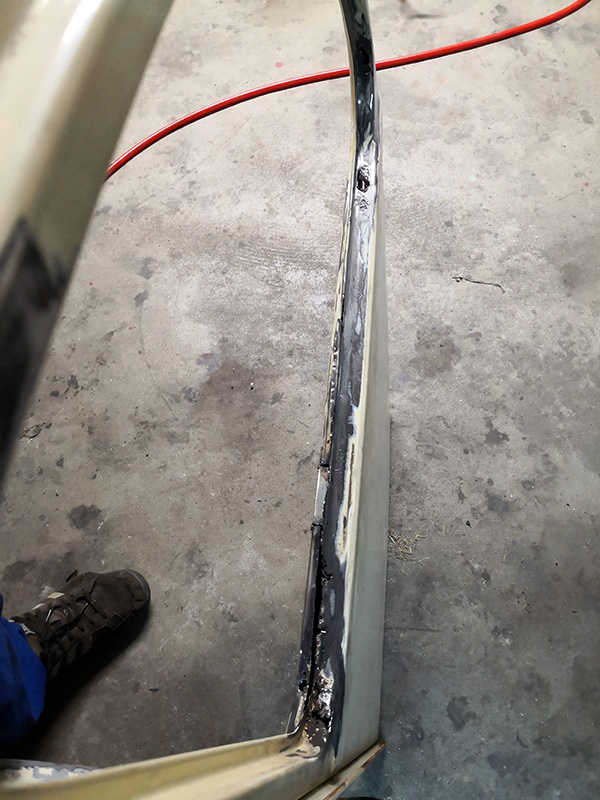 J'ai tout d'abord réparer la porte avant gauche, où je profil support pour le joint était complètement bouffé par la rouille.