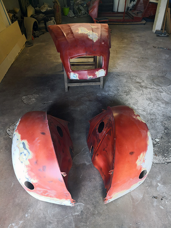 C'était séance mastic et ponçage des ailes avant et du capot.