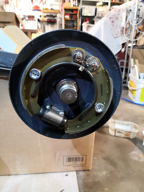 Deux bout de tuyaux PVC et hop Et ensuite j'ai remonté les freins et réglé les excentriques Un petit coup de maillet pour bloquer les tuyaux de freins sur les bras de suspension.