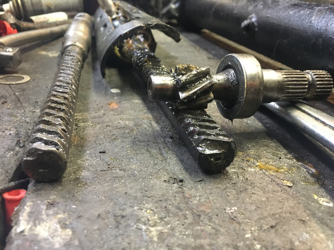 Le libre coulissement des sièges des rotules intérieures n'est pas bon, ni certainement, le parallélisme des dents de la crémaillère avec son pignon...