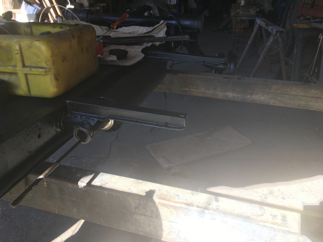 Ce matin, comme je vous l'avais déjà dit, j'ai terminé "à la hâte" le montage des pots de suspension et des bras de direction sur le châssis, afin de dégager l'accès à mon pont élévateur.