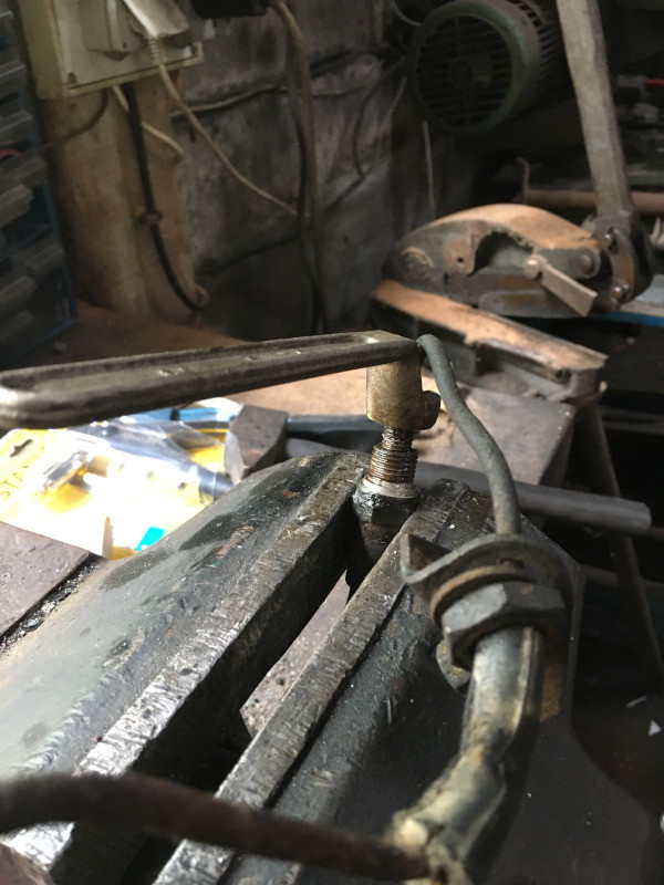 Voici les photos prises ce matin : Là, c'est la dépose à l'étau d'un flexible avec son raccord.. Patience, clé spéciale renforcée de 9 mm, dégrippant et chaleur ont fait qu'il n'y a pas eu de casse ! Bon week-end et encore merci de me lire !