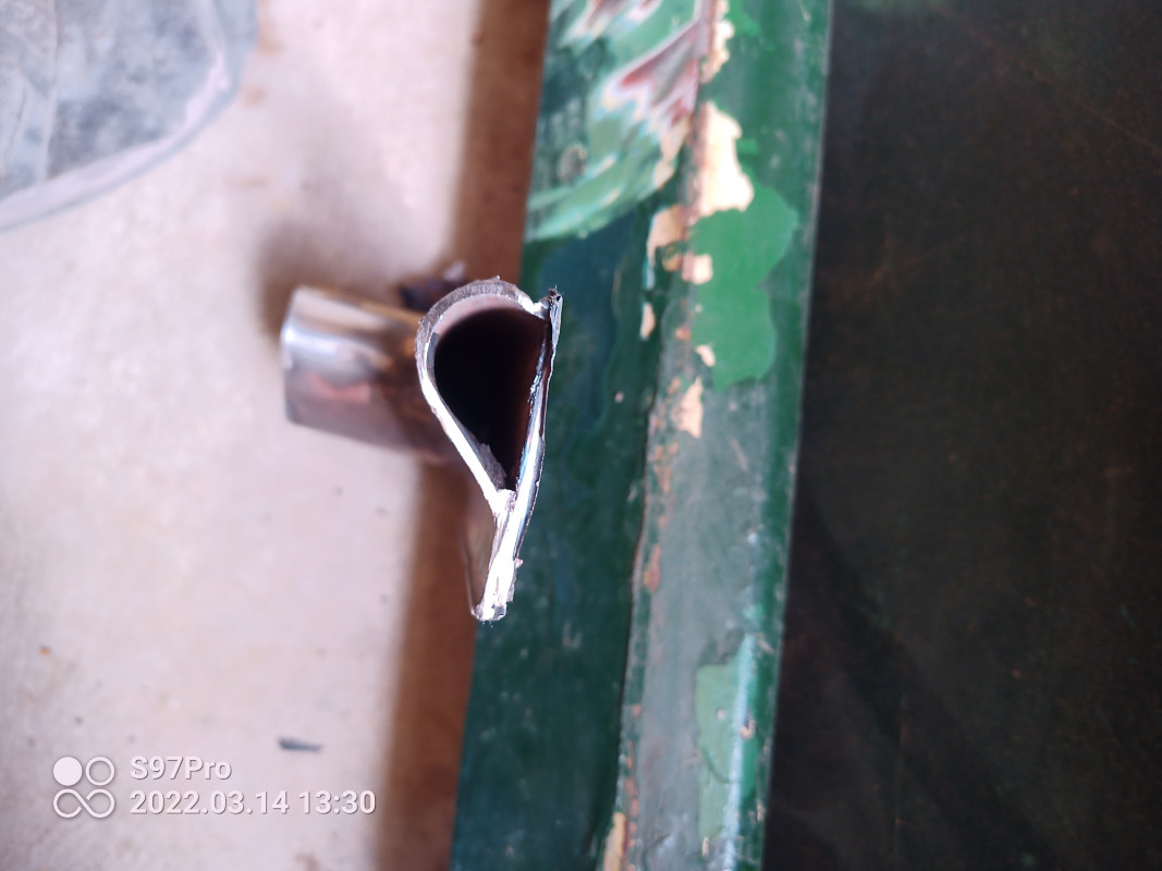 Ce que j'ai de bouffé par la rouille à une forme de goutte d'eau, je prendrai une photo demain.