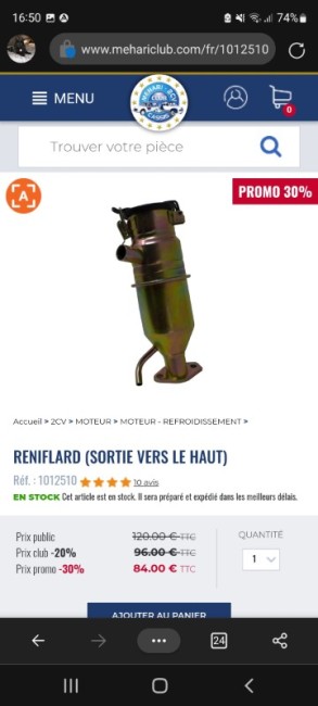 Donc commande passée, reniflard à 84 € sans frais de port car je suis affilié au club.