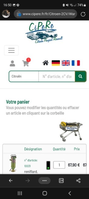 Commande reçue, reniflard de belle qualité, normal, en soulevant l'étiquette: marque Cipère, fabrication européenne, petit tour sur le site, prix +/- 69€ + 11 € de port soit 80€ donc moins cher :pascontent: